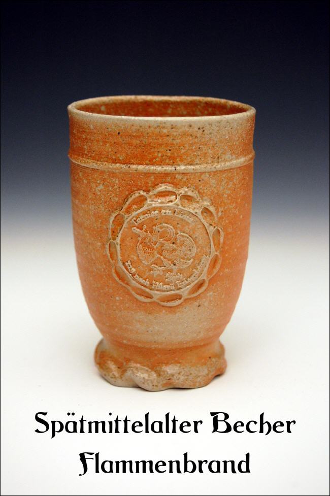 Um Euch die Möglichkeit zu bieten ein Andenken von den Turniertagen mit nach Hause zu nehmen das man noch öfter in die Hand nimmt, hat der Töpferermeister Ilja Frenzel von www.mittelalterkeramik.de auf unsere Anregung hin einen Becher entworfen den Ihr auf den Turniertagen bei Ihm kaufen könnt. Ilja wird noch einen weiteren Becher herstellen die sich im Brand von dem hier gezeigten unterscheidet. Es handelt sich um den unten gezeigten Becher als spätmittelalterlichen Holzbrand aus dem Flammofen. Bilder hierzu bekommen wir in Kürze.